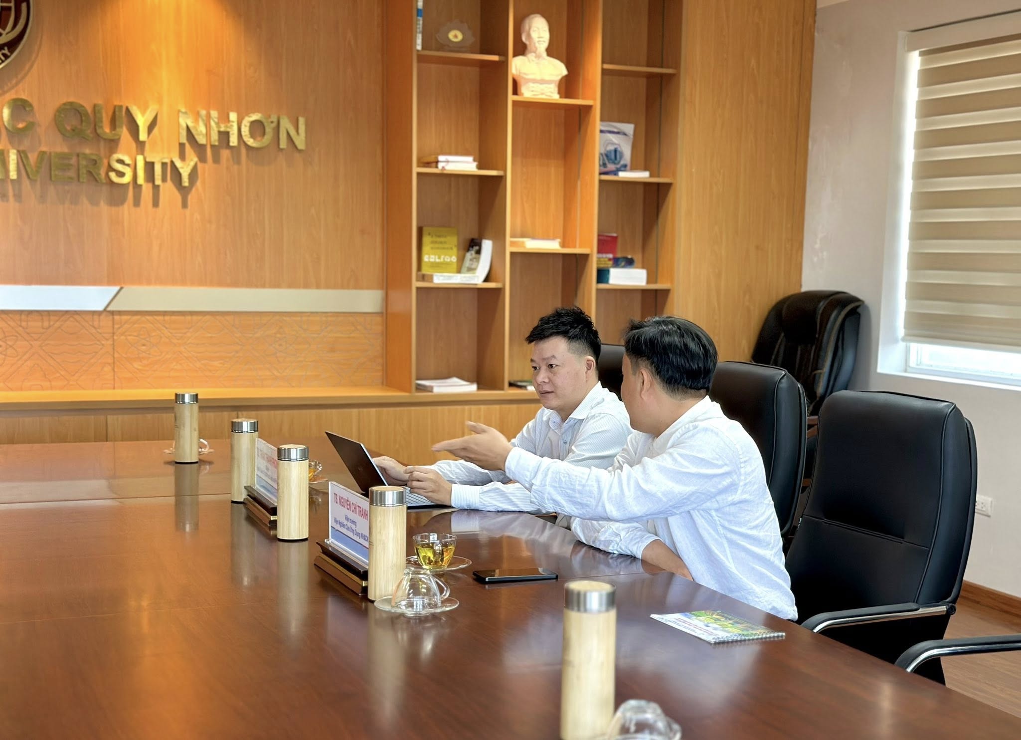 During the meeting, representatives from the enterprise shared an overview of their future development strategy and proposed several specific, highly applicable areas of cooperation. On behalf of Quy Nhon University, Dr. Nguyen Chi Tranh - Director of the Institute for Applied Science and Technology Research, former Deputy Head of the Faculty of Finance, Banking & Business Administration; and Dr. Tran Thanh Phong - Head of the Tourism and Travel Service Management program, engaged in frank and practical discussions with the enterprise to analyze feasibility and define appropriate implementation directions.