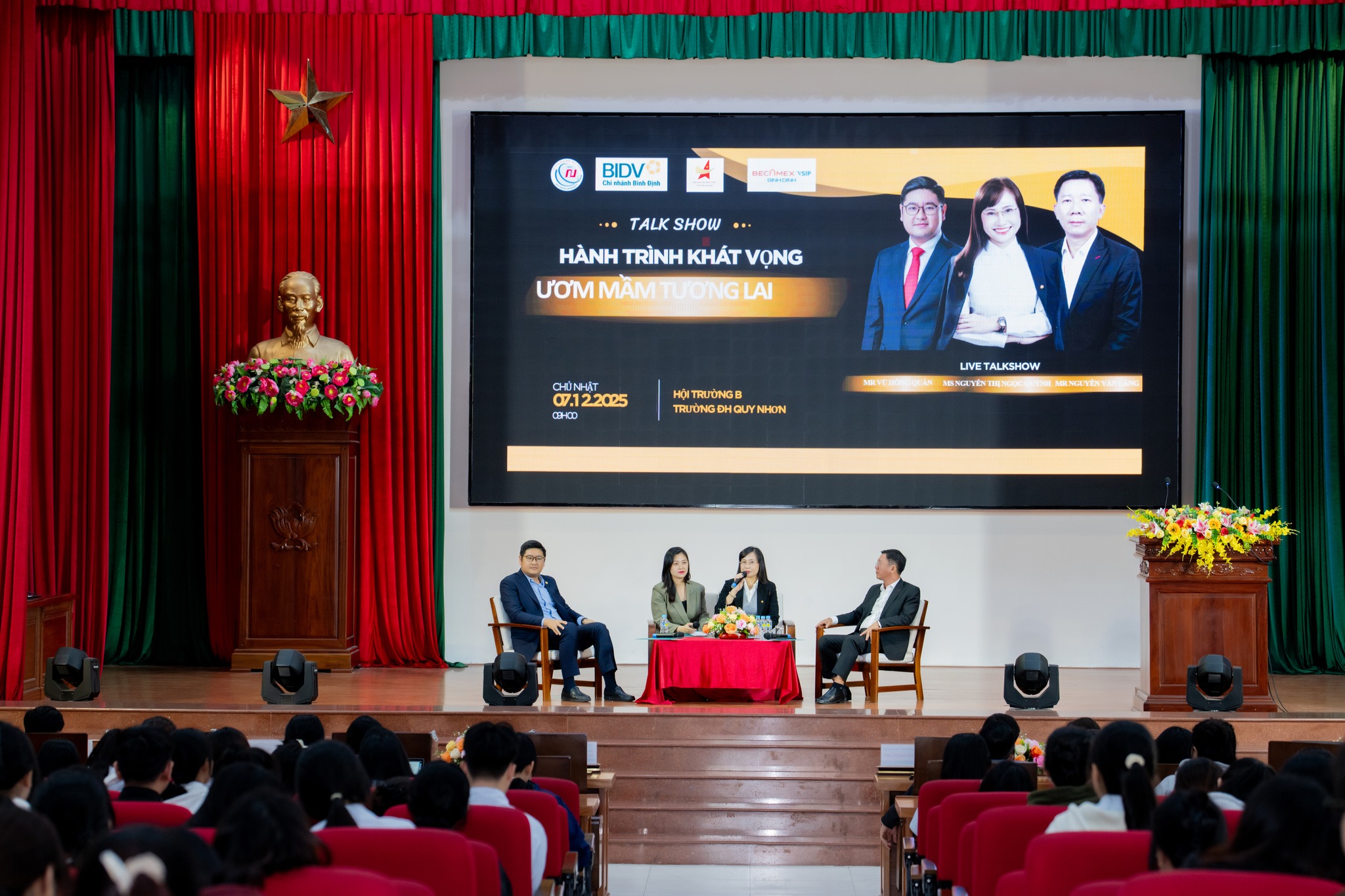 On the morning of **December 7, 2025**, at **Hall B, Quy Nhon University**, the talkshow *“The Journey of Aspiration – Nurturing the Future”* took place in a lively and open atmosphere. The event became even more meaningful with the participation of **three inspirational speakers**: